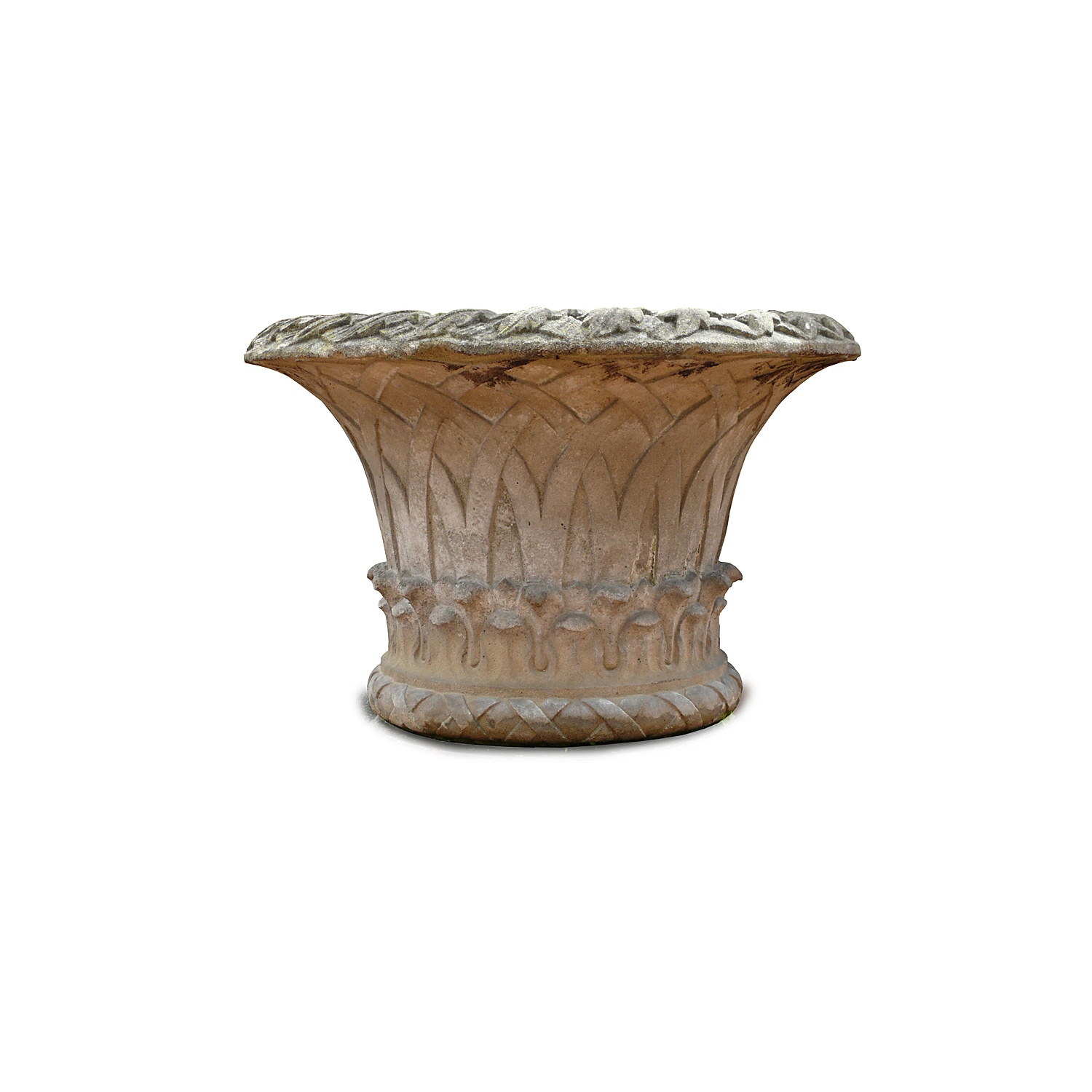 STONE GARDEN URN PLATTED WITH ACANTUS LEAF RIM 42 CM HIGH 62 CM DIAM