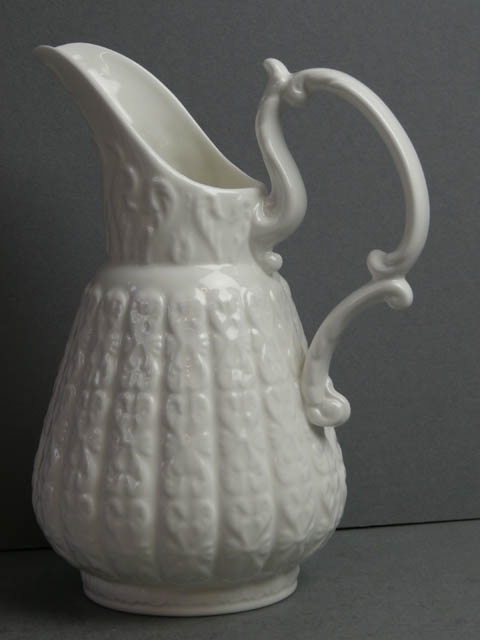 SURREY WHITE CHINA JUG ORNATE RAISED PATTERN