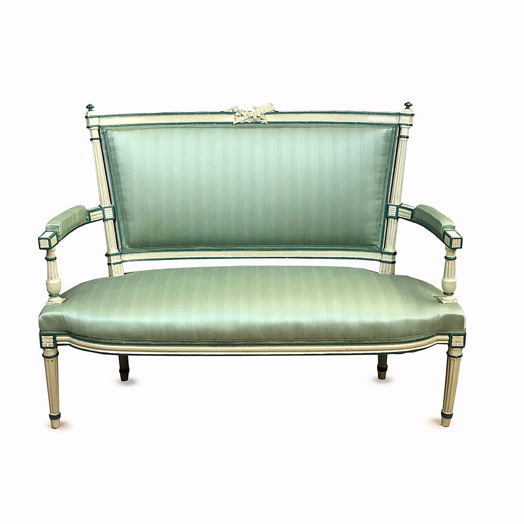 SWEDISH CREAM AND GREEN TWO SEAT SETTEE / SOFA PALE GREEN SILK UPHOLSTERY CIRCA 1820 125 CM LONG