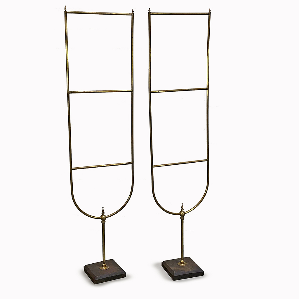 TALL BRASS SHOP DISPLAY STAND U SHAPED ON SQUARE WOODEN BASE 158 CM HIGH 39 CM WIDE (X2)