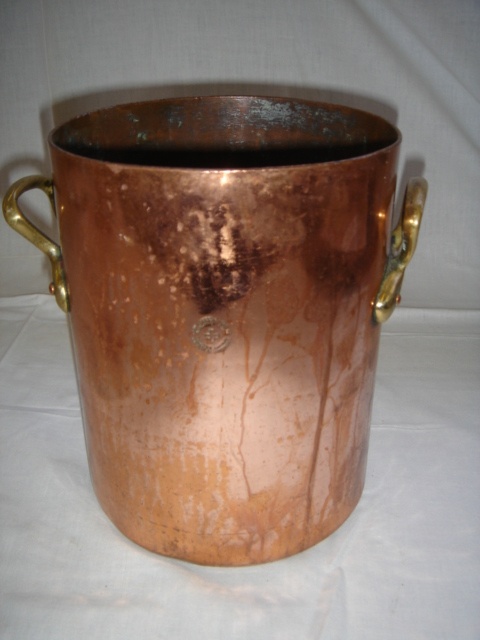 TALL COPPER TWO HANDLE STOCK SAUCEPAN ( FROM SET ) 15 CM DIAM. 20 CM HIGH SMALLEST