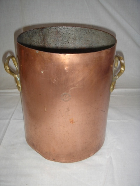 TALL COPPER TWO HANDLE STOCK SAUCEPAN ( FROM SET ) 21 CM DIAM. 29 CM HIGH LARGEST