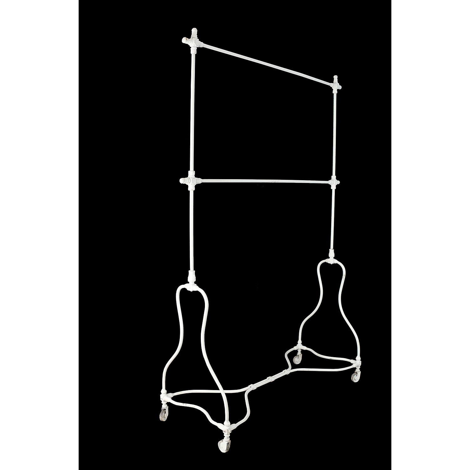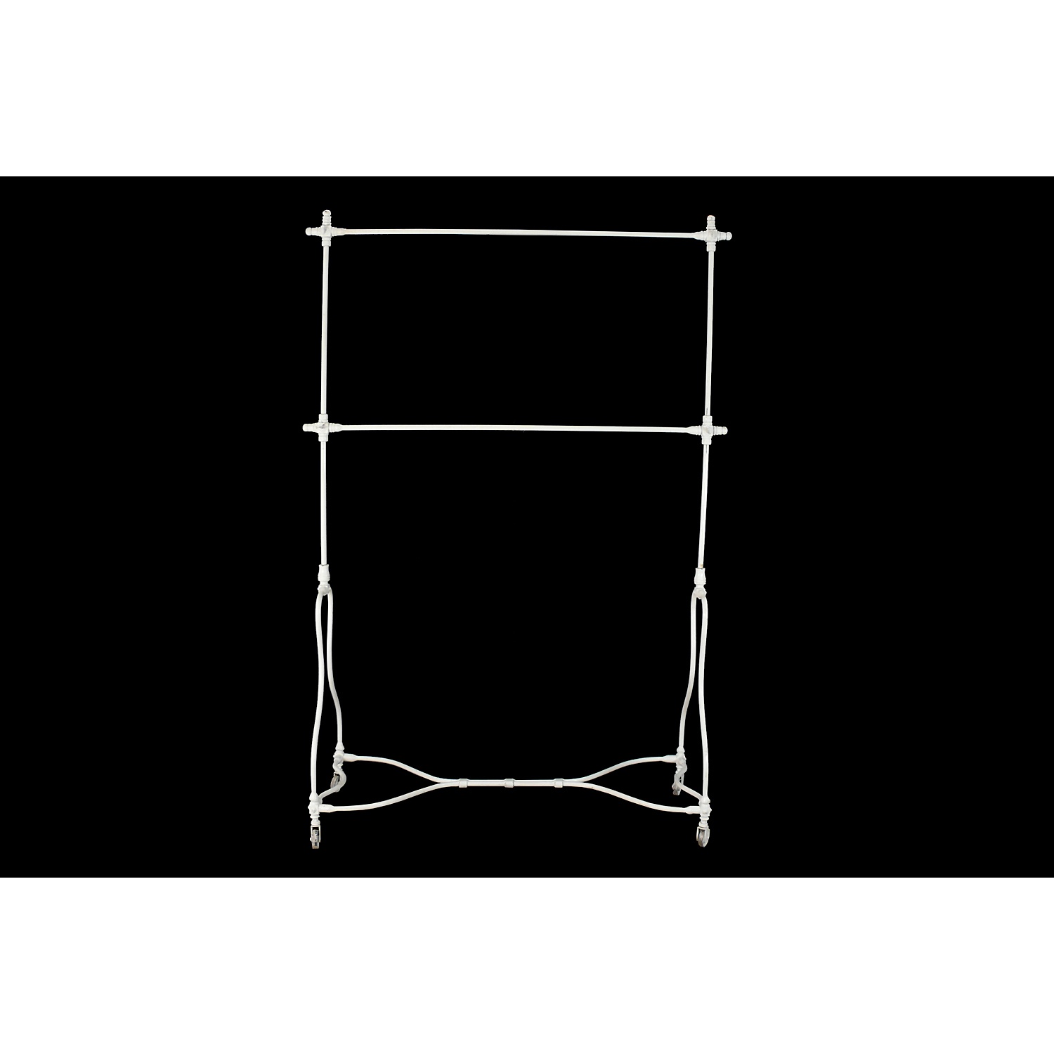 TALL FRENCH CLOTHES RAIL WHITE PAINTED WROUGHT IRON TWO RAILS 196 CM HIGH 52 CM DEEP 133 CM LONG (X2)