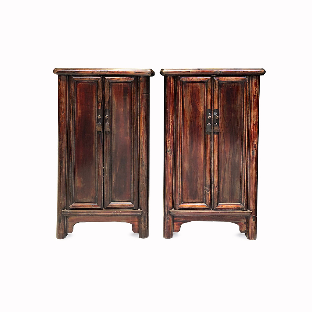 TALL NARROW CHINESE DARKWOOD SIMPLE TWO DOOR CUPBOARD 21/i WIDE EARLY 19TH CENT. (X2)