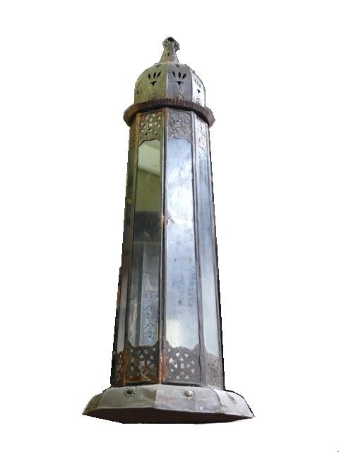 TALL ORNATE MOROCCAN TIN LIGHT HOUSE LANTERN WITH ONION TOP (X2)