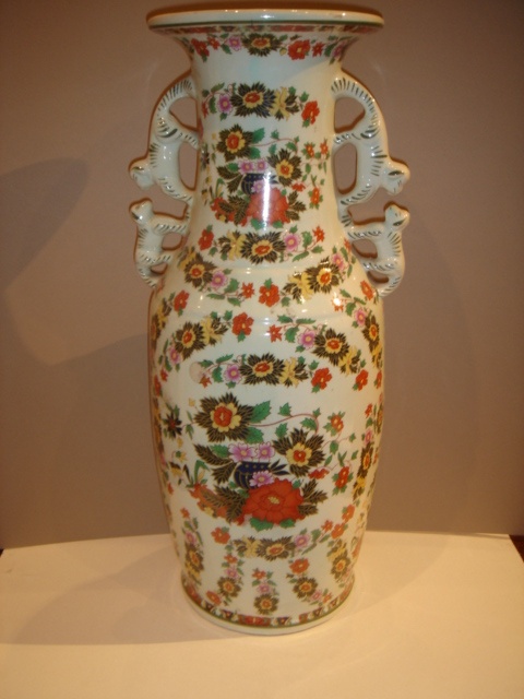 TALL REPRO CHINESE FLORAL PATTERN VASE DOG HANDLES 20/i HIGH (X2)
