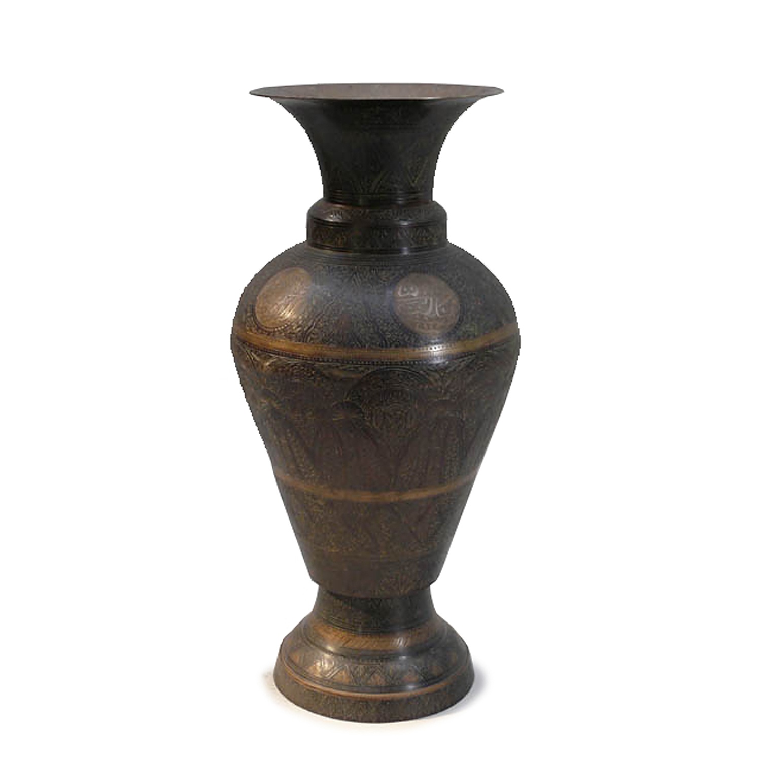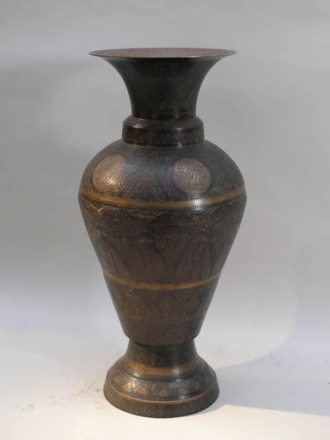 TALL TWO TONE BRONZE ENGRAVED MOGHUL VASE 2'8/i HIGH (X2)