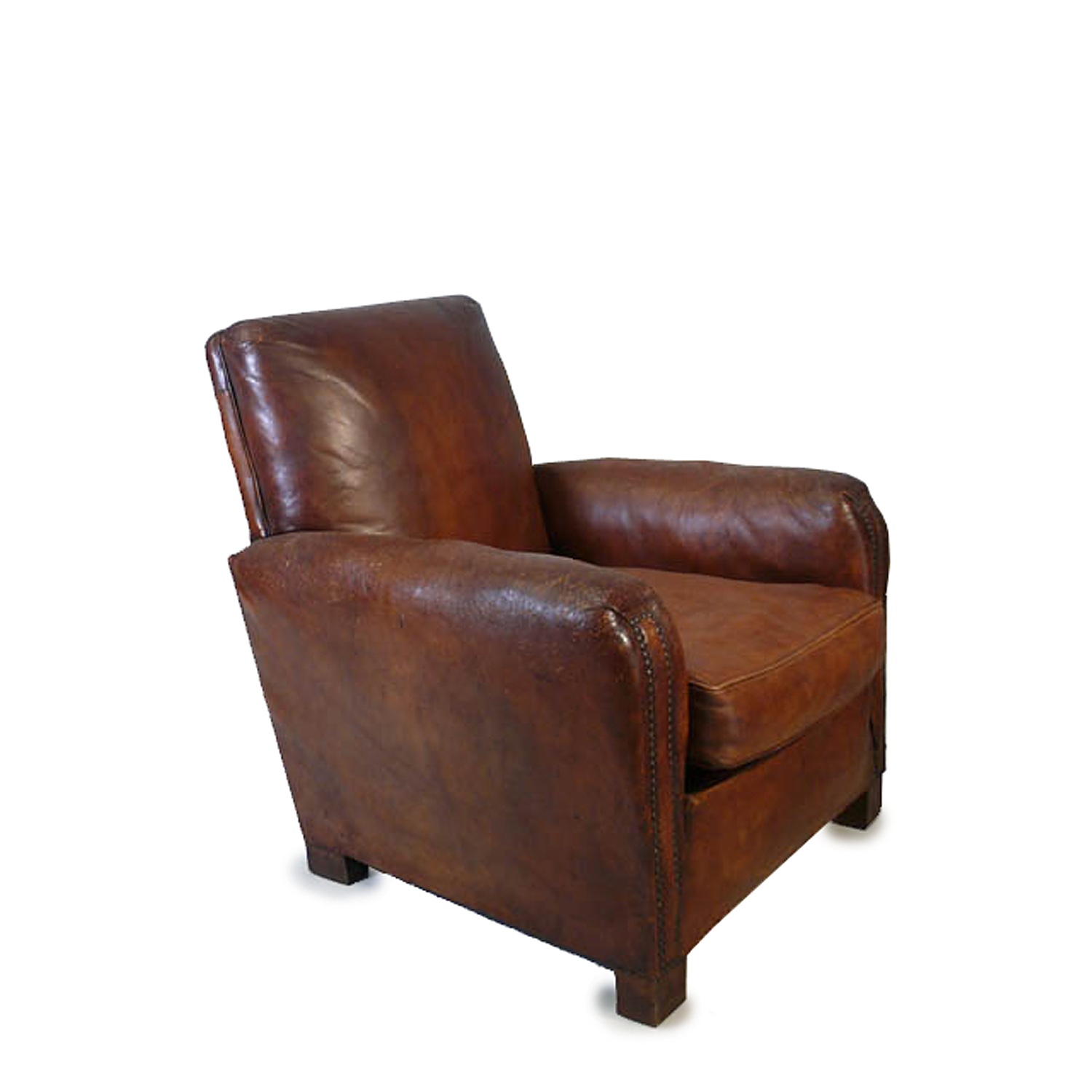 TAN LEATHER 1940'S ARM CHAIR WITH CUSHION SEAT AND STUDDED DETAIL (X4)