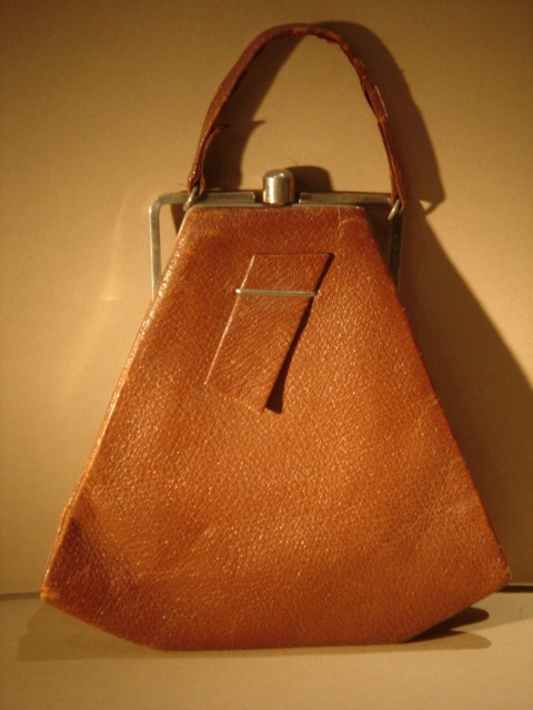 TAN LEATHER WEDGE SHAPE HANDBAG 18 CM WIDE