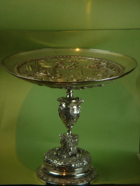 TAZZA E.P. SILVER EXTRA LARGE WITH VAN VIENAN CLASSICAL SCENE IN RELIEF 13/i HIGH 31 CM