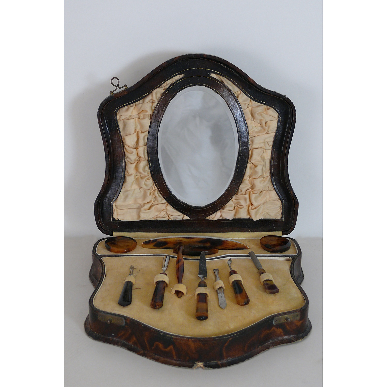 TEN PIECE TORTOISESHELL MANICURE SET IN FITTED CASE