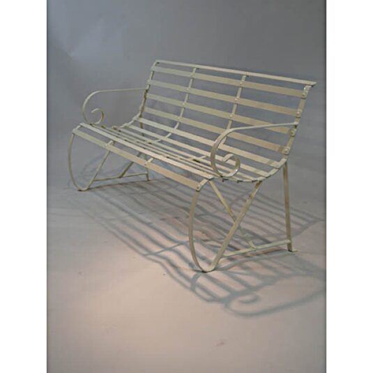 THE WIMBLEDON GARDEN BENCH WROUGHT IRON THREE SEATER FLAT METAL CREAM PAINTED 150 CM LONG 78 CM HIGH 65 CM DEEP