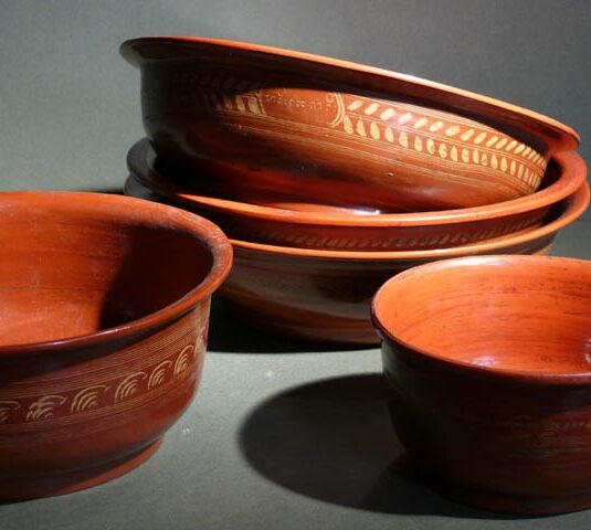 TIBETAN RED LACQUER BOWL 12 CM - 21 CM DIAM. (X5)