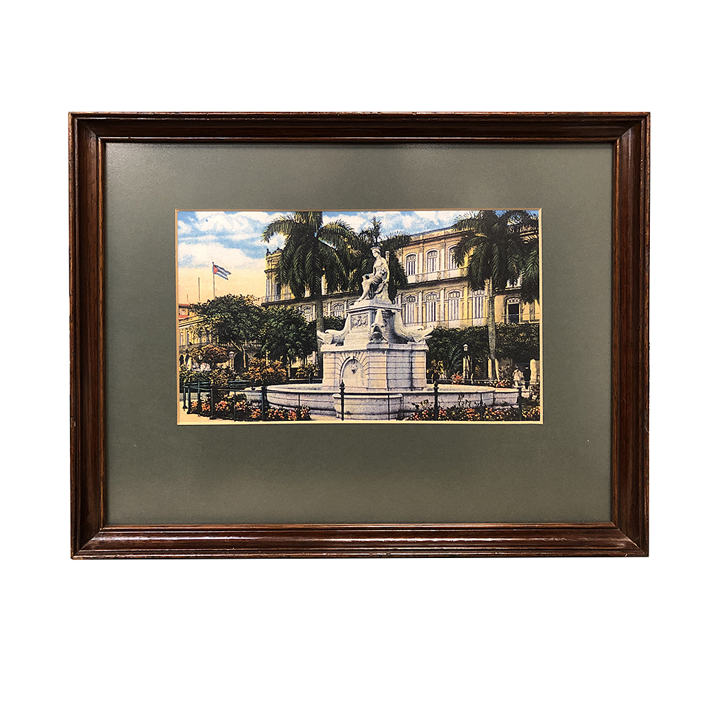 TINTED PHOTOGRAPH BY WILLIAM HENRY JACKSON C1900 OF THE FOUNTAIN OF PILA DE LA INDIA IN HAVANA CUBA IN A MODERN OAK FRAME 12" X 14"