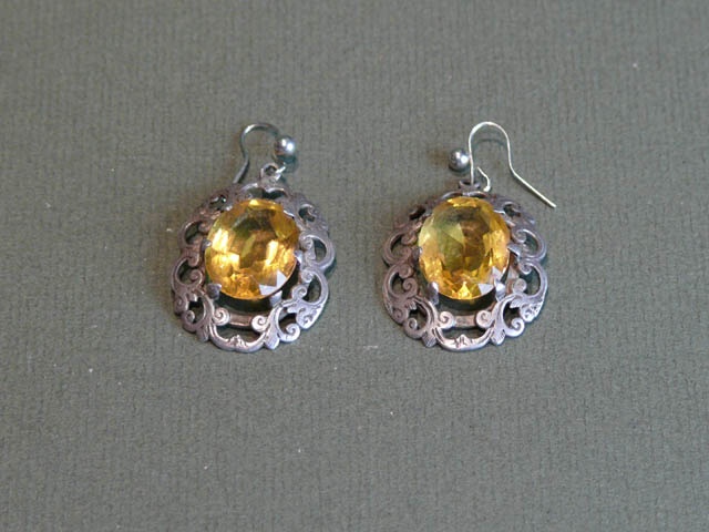 TOPAZ GLASS EARRINGS IN SILVER SETTING