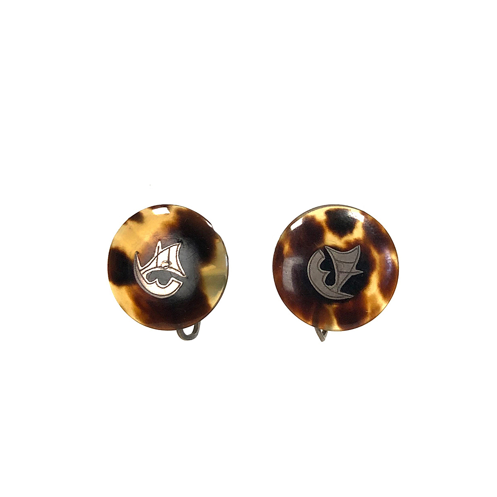 SMALL CIRCULAR TORTOISESHELL EARRINGS WITH SILVER DECORATION