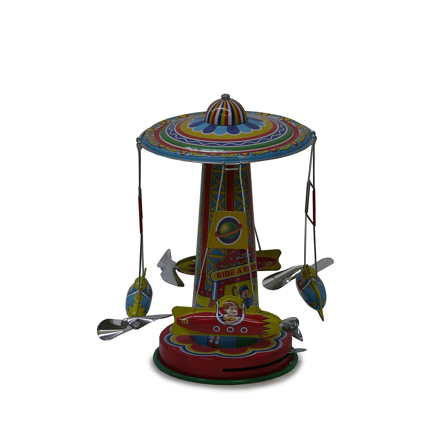 TOY CLOCKWORK TIN CAROULSEL WITH AEROPLANES