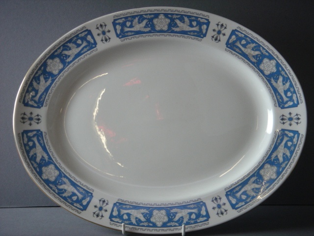 TUDOR ROSE ROYAL ALBERT LARGE OVAL PLATTER BLUE DOVE BORDER 38 CM