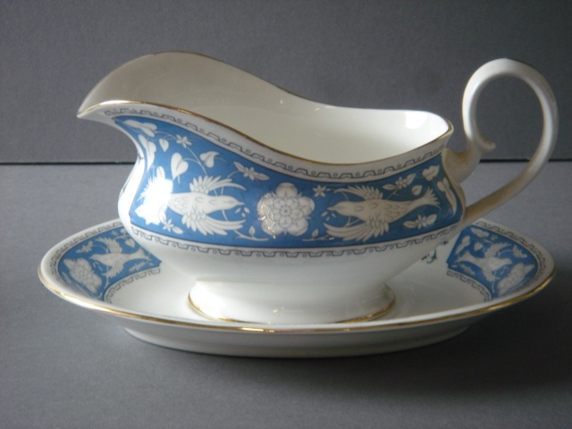 TUDOR ROSE ROYAL ALBERT SAUCE BOAT AND STAND BLUE DOVE BORDER