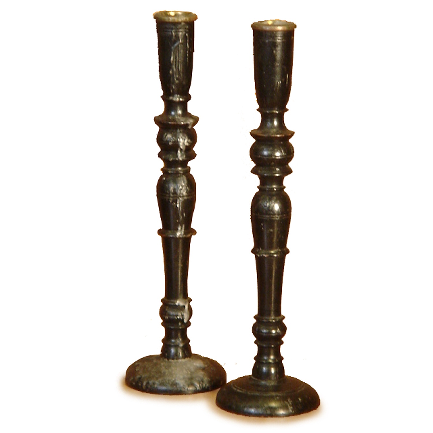 TURNED EBONY CANDLESTICK 12/i HIGH 30 CM (X2)