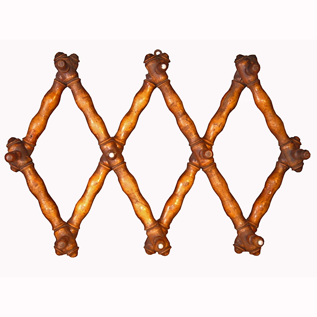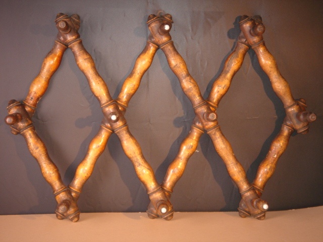 TURNED WOOD EXPANDING WALL COAT RACK / HOOKS 70 CM WIDE (APPROX)