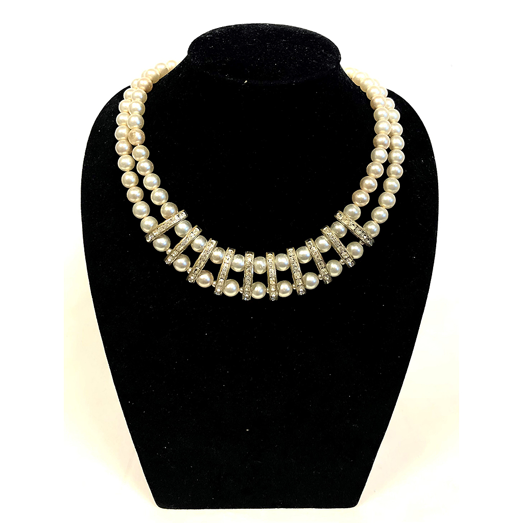 TWO ROW COLLAR PEARL NECKLACE WITH GILT AND PASTE SPACERS