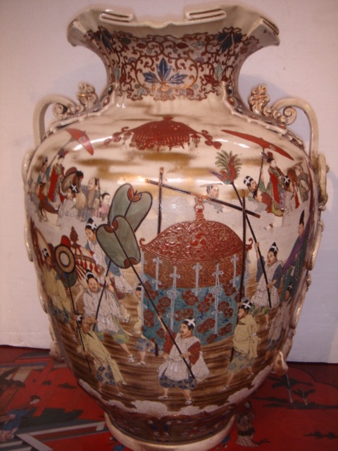 VERY LARGE ANTIQUE JAPANESE SATSUMA VASE 84 CM HIGH X 43 CM DIAM (STAND NOT INC.)