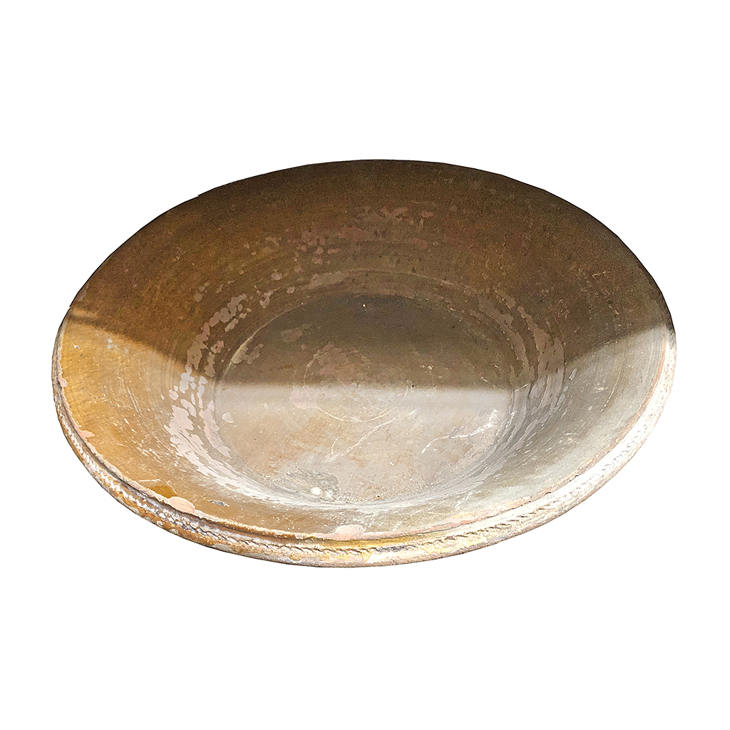 VERY LARGE EARLY SPANISH TERRACOTTA SKIMMING BOWL 82 CM DIAM
