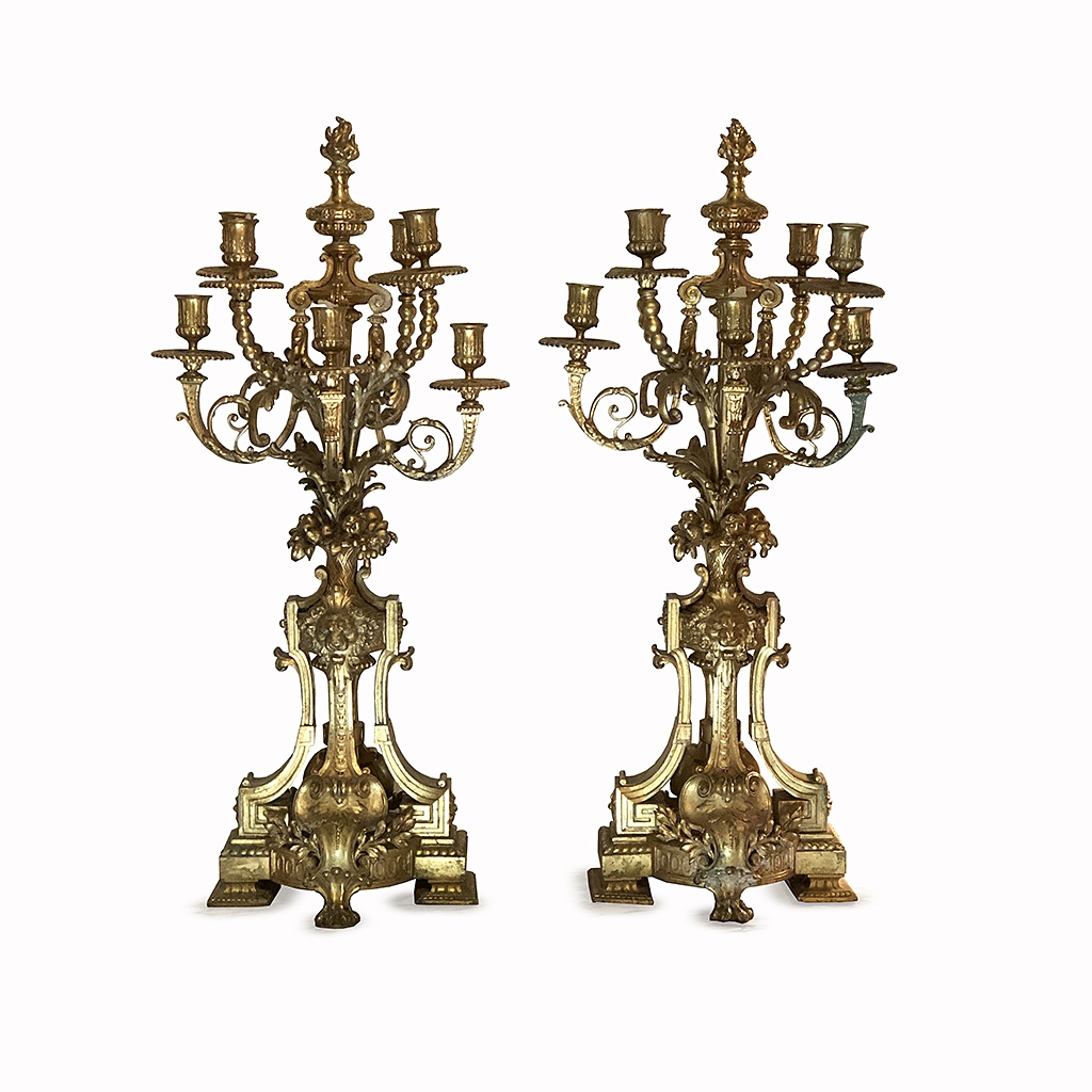 VERY LARGE FRENCH POLISHED ORMOLU CANDELABRA LION HEAD 7 LIGHT 83 CM HIGH 38 CM WIDE (X2)
