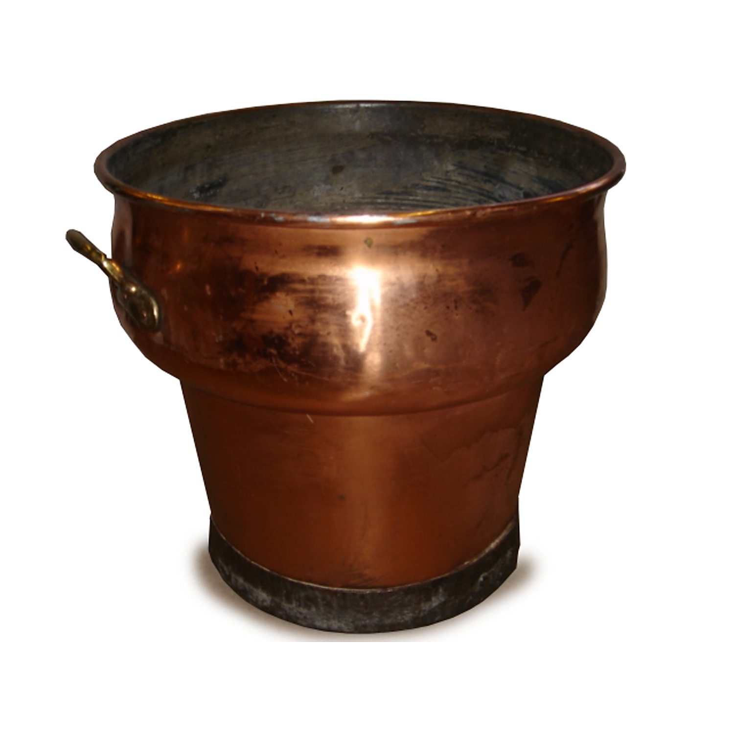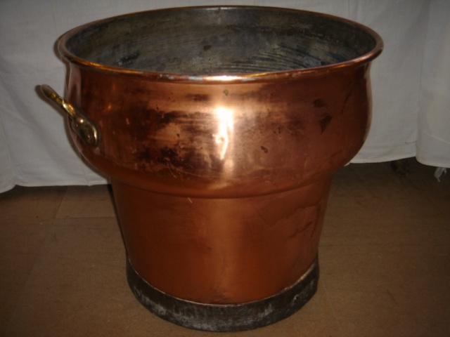 VERY LARGE SHAPED COPPER TWO HANDLE CAULDRON PAN