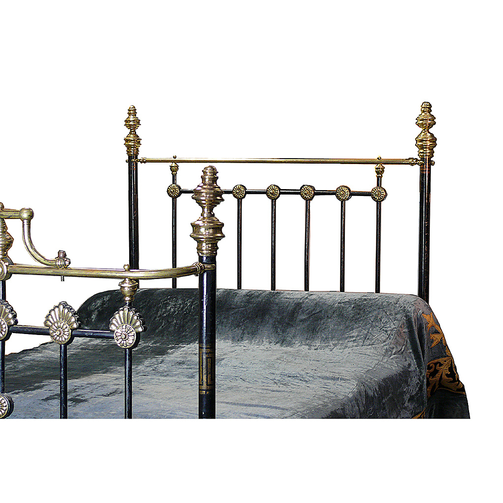 VICTORIAN BLACK AND BRASS SINGLE BED WITH MATTRESS 4' WIDE