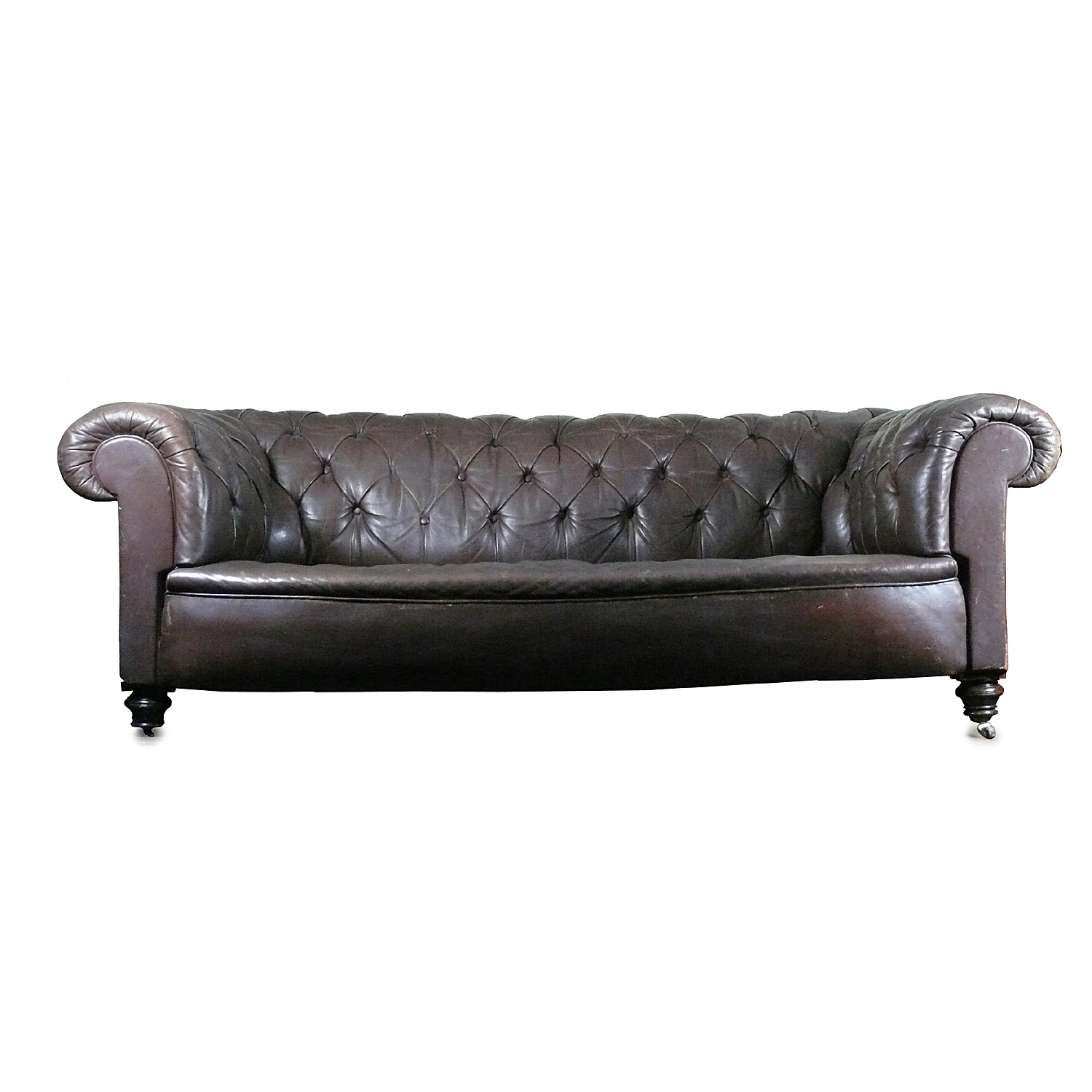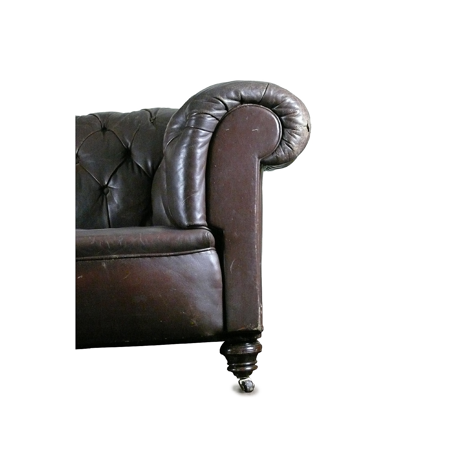 VICTORIAN DARK TAN LEATHER DEEP BUTTONED CHESTERFIELD SETTEE 198 CM WIDE 105 CM DEEP 64 CM HIGH 68 KG