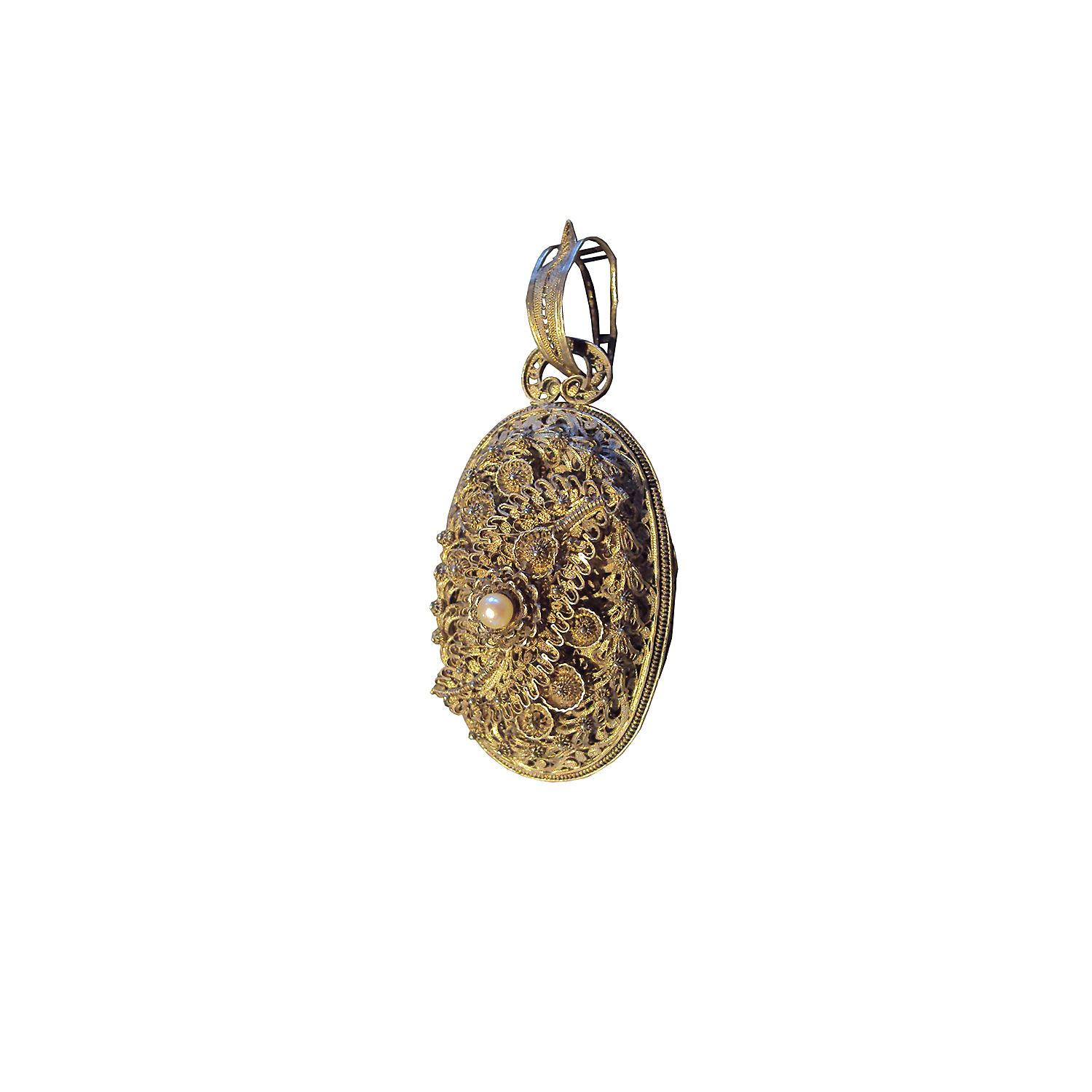 VICTORIAN GILT METAL FILIGREE LOCKET WITH PEARL CENTRE