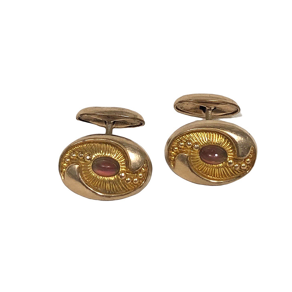 VICTORIAN GOLD PLATED DECORATIVE CUFFLINKS OVAL WITH JADE STONE