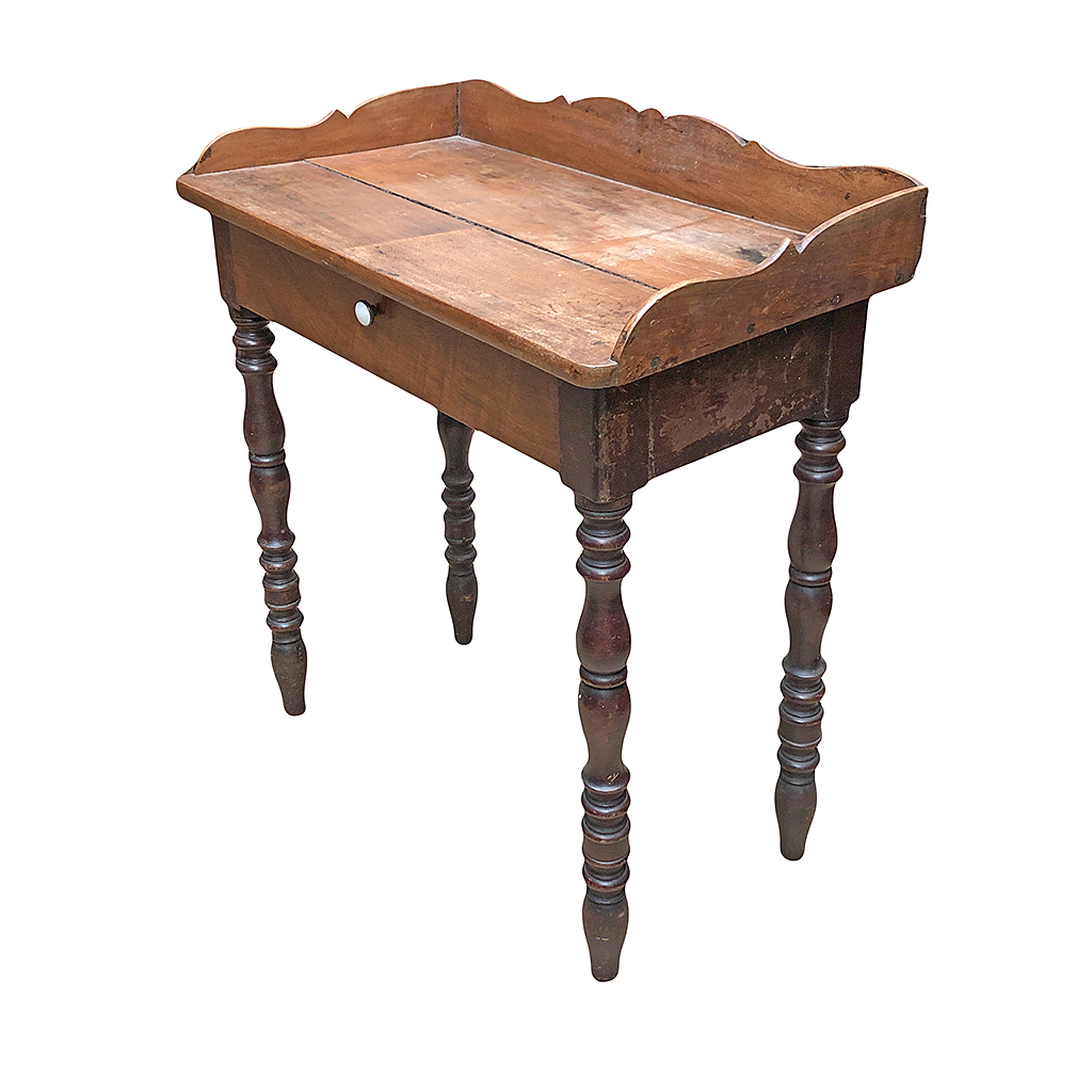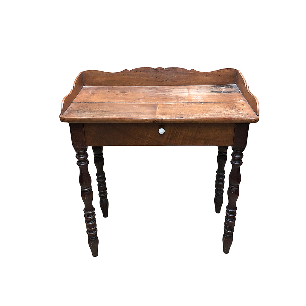 VICTORIAN MAHOGANY WASH STAND THE FADED TOP WITH SPLASH BACK AND SIDES FADED WITH SINGLE DRAWER ON TURNED LEGS 70 CM HIGH 70 CM WIDE 39 CM DEEP