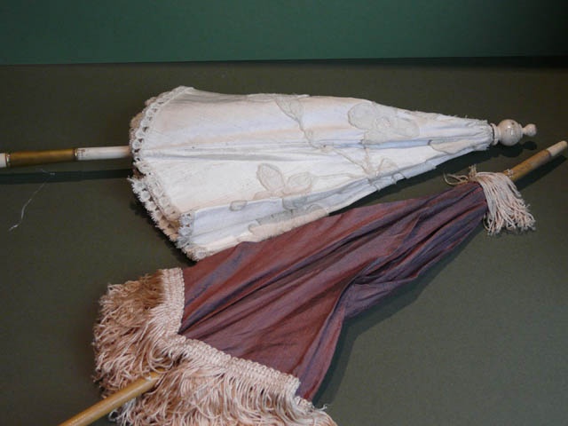 VICTORIAN PARASOL WITH LINEN / COTTON COVER AND WOODEN HANDLE AS LISTED