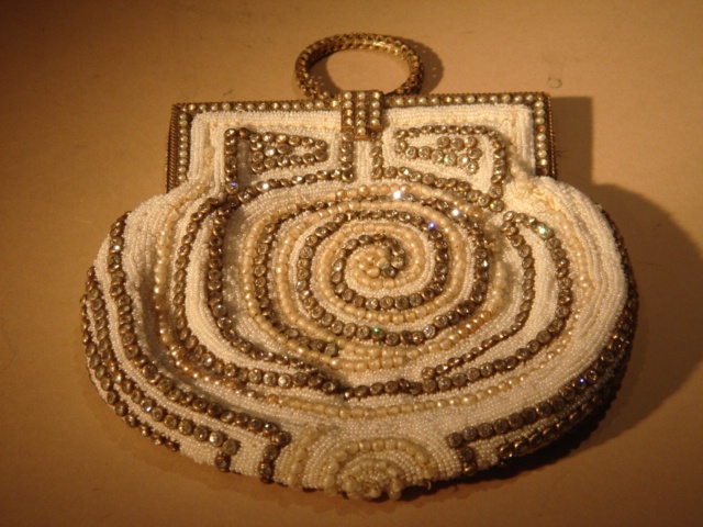 VICTORIAN PEARL AND DIAMANTE CLUTCH HANDBAG 15 CM WIDE