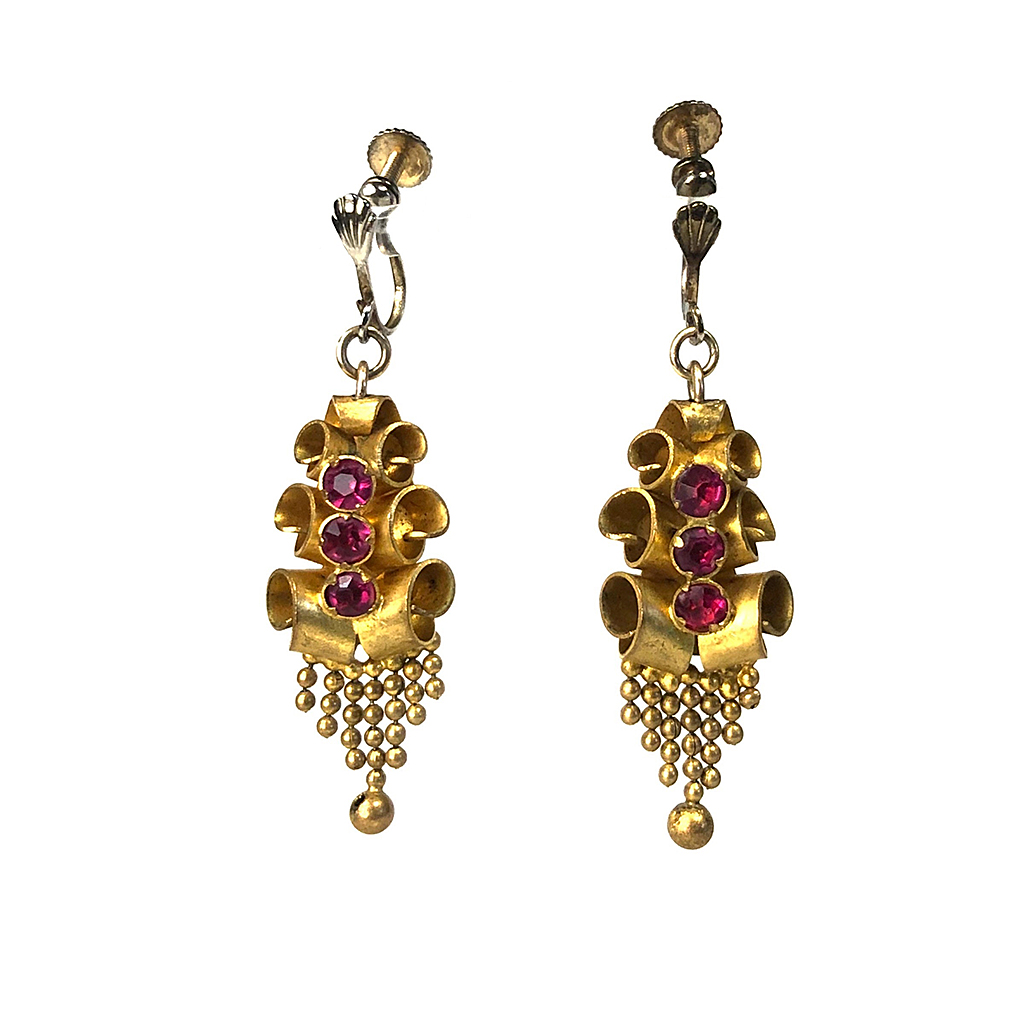 VICTORIAN PINCHBECK AND PASTE EARRINGS WITH FRINGE TASSEL END