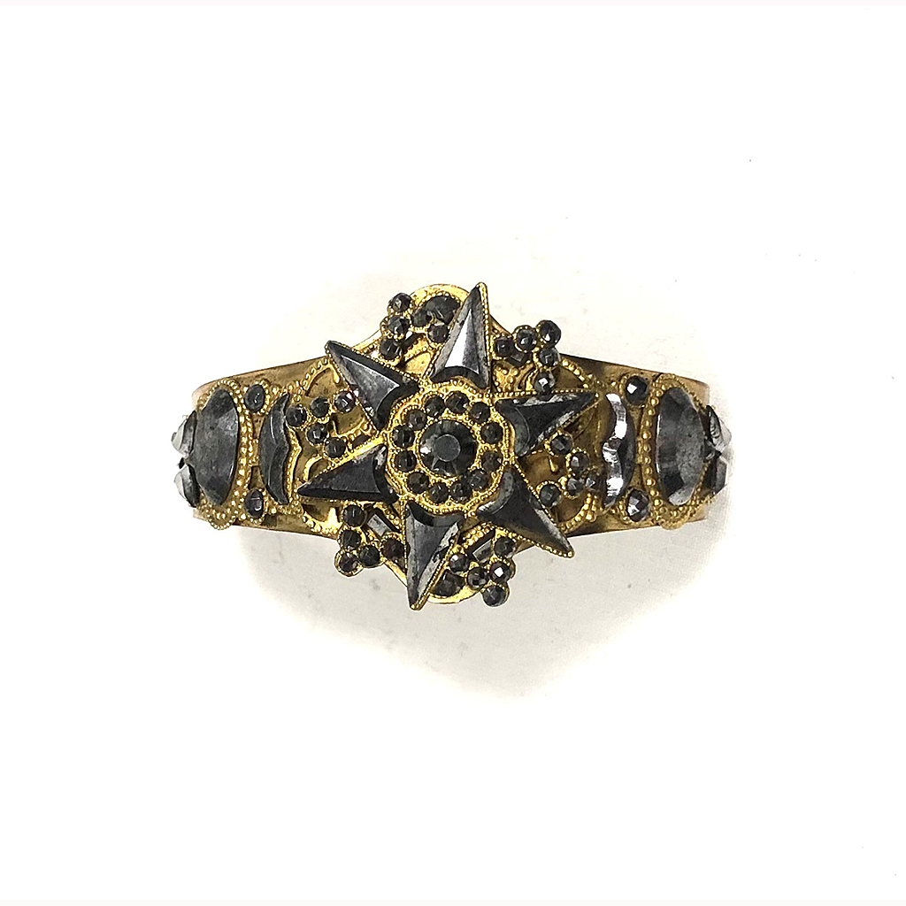 VICTORIAN PINCHBECK BANGLE WITH CUT STEEL DECORATION