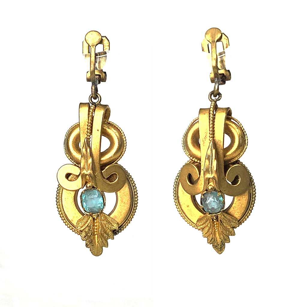 VICTORIAN PINCHBECK EARRINGS WITH CENTRAL PASTE STONE AND LEAF DECORATION