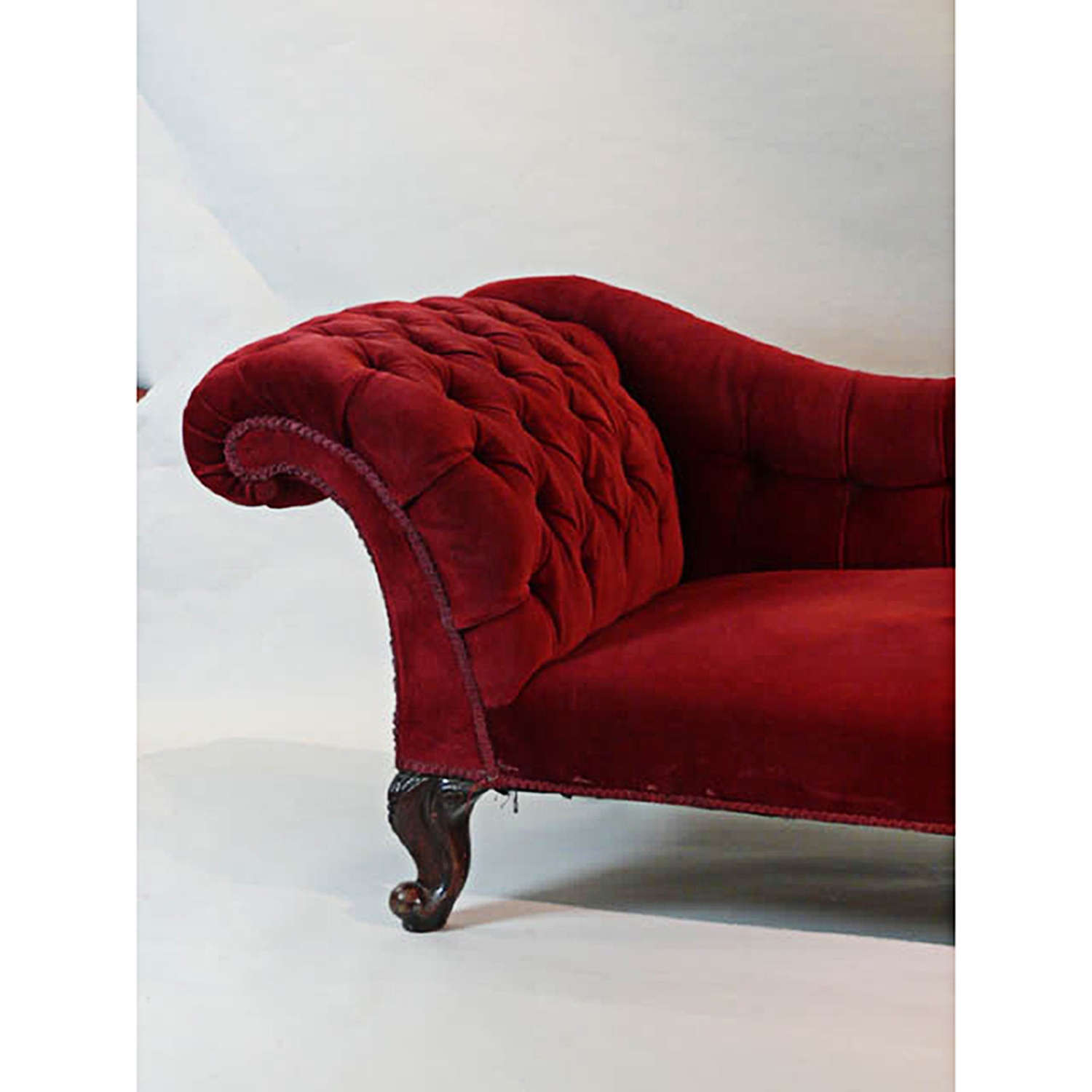 VICTORIAN RED VELVET DEEP BUTTONED CHAISE LONGUE 193 CM LONG 68 CM HIGH 70 CM DEEP