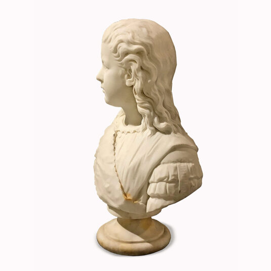 VICTORIAN WHITE MARBLE BUST OF A YOUNG GIRL ON SOCLE BASE SIGNED WILLIAM BRODIE (1815-1881) RSA Sc. 1868 56 CM HIGH 38 CM WIDE