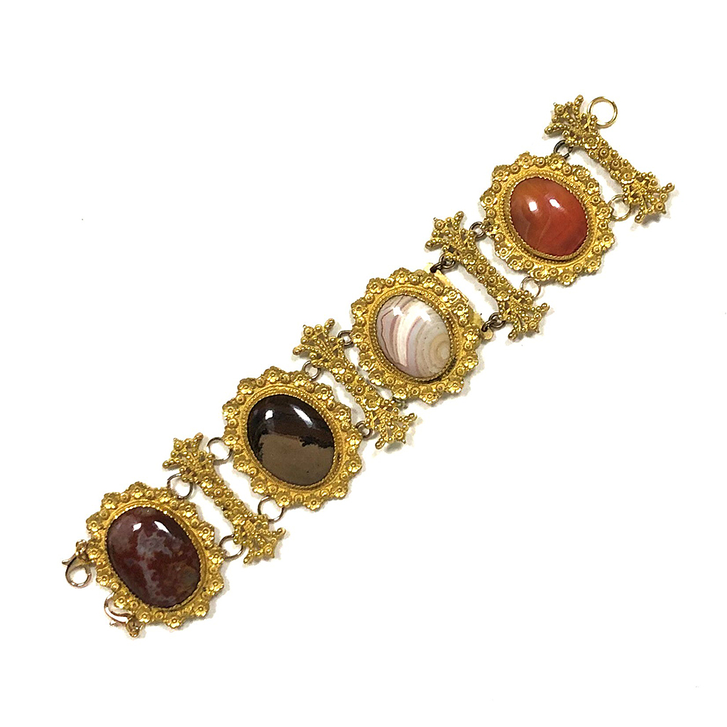 VICTORIAN WIDE DECORATIVE PINCHBECK AND SEMI PRECIOUS STONE BRACELET