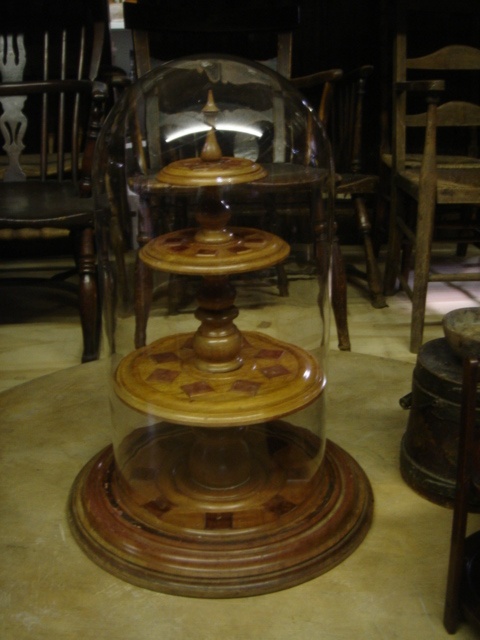 VICTORIAN WOODEN DISPLAY STAND LIGHT MAHOGANY FOUR TIER 59 CM HIGH 27 CM DIAM APPROX