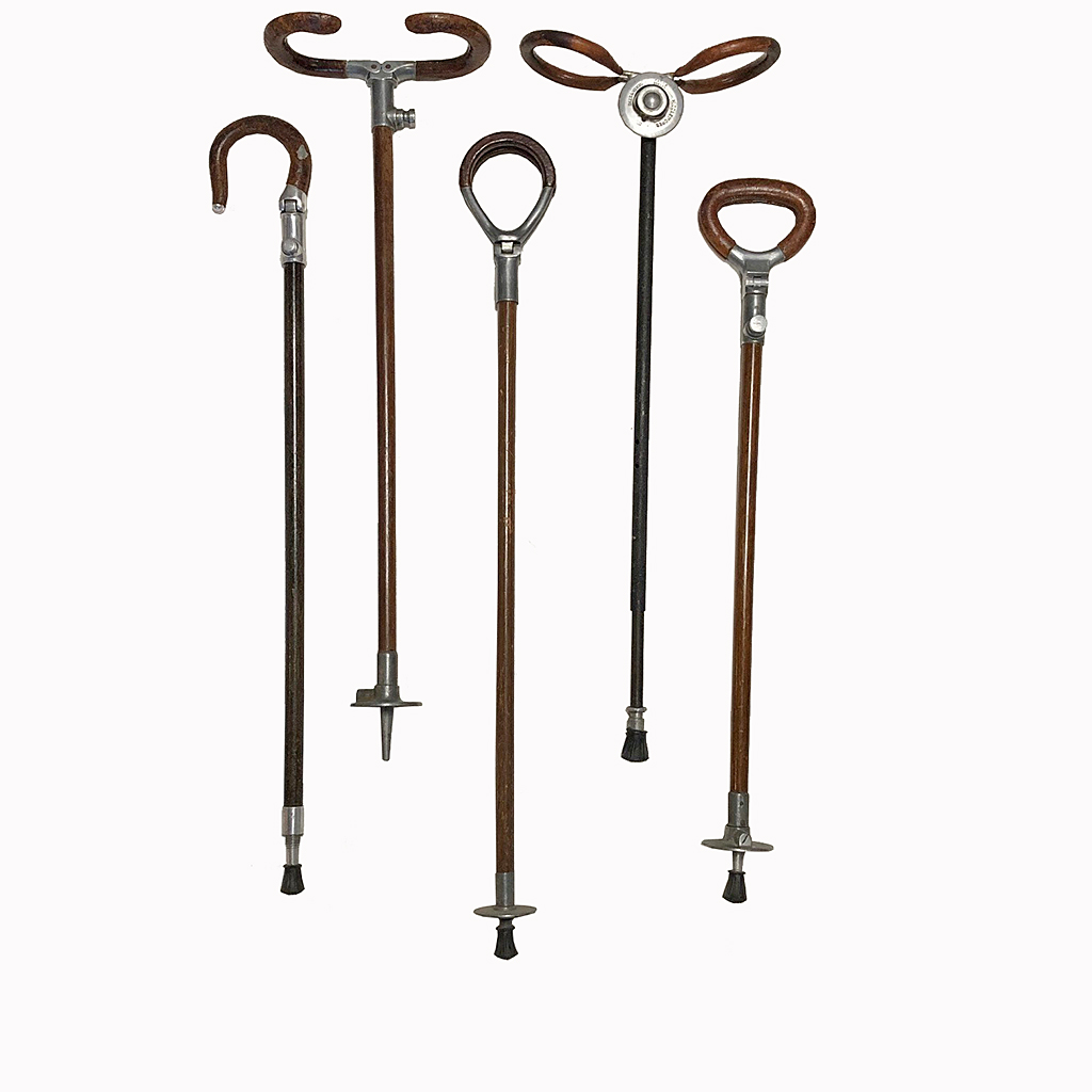 VINTAGE METAL SHOOTING SICK WITH LEATHER HANDLE AS SELECTED