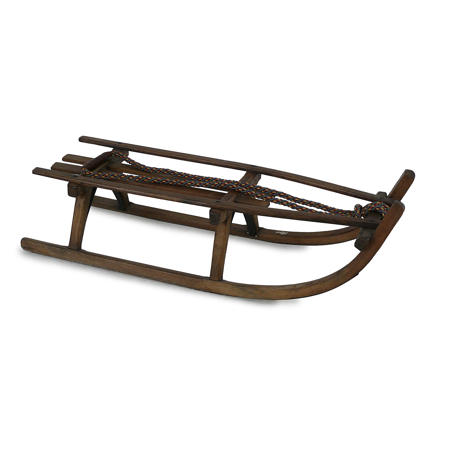 VINTAGE WOODEN TOBOGGAN / SLEDGE WITH ROPE RIENS