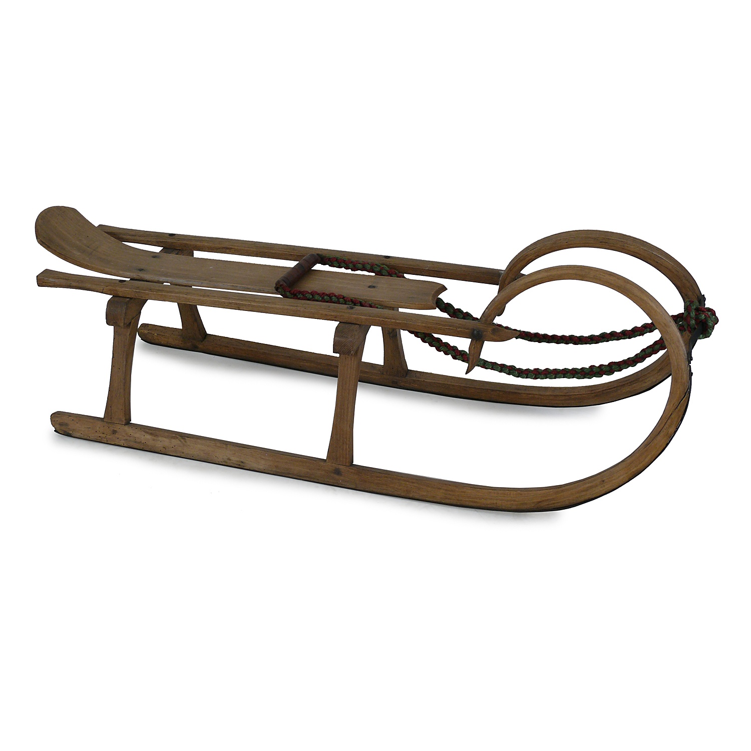 VINTAGE WOODEN TOBOGGAN WITH ROPE RIENS