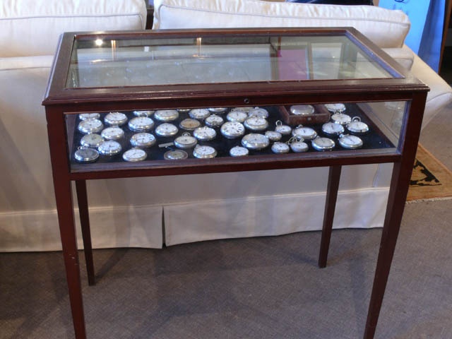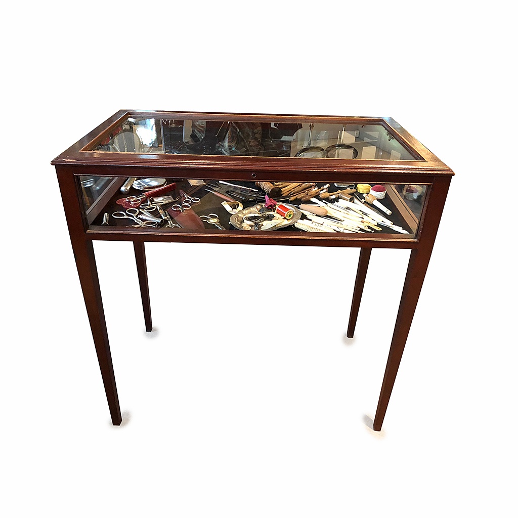 VITRINE SHOWCASE TABLE SIMPLE MAHOGANY ON TAPERING LEGS 74 CM LONG (X3)