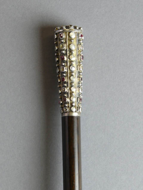 WALKING STICK / CANE SILVER JEWEL ENCRUSTED TOP WITH SEMI PRECIOUS STONES 94 CM LONG