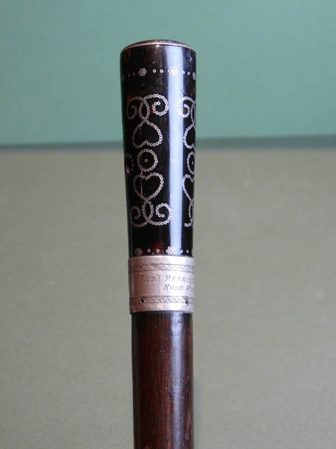 WALKING STICK / CANE WITH DEEP TORTOISESHELL PIQUE KNOB AND SILVER BAND 80 CM LONG